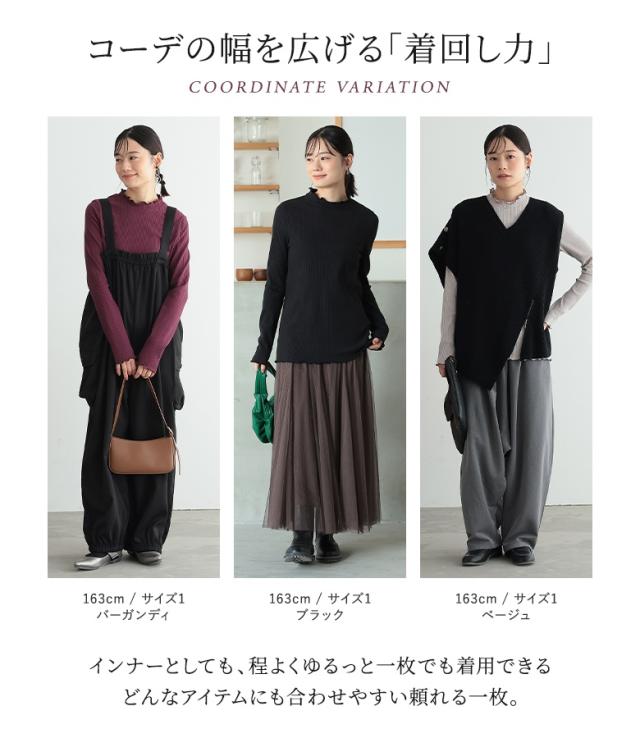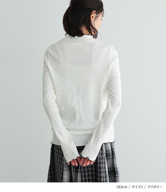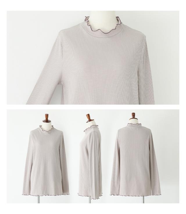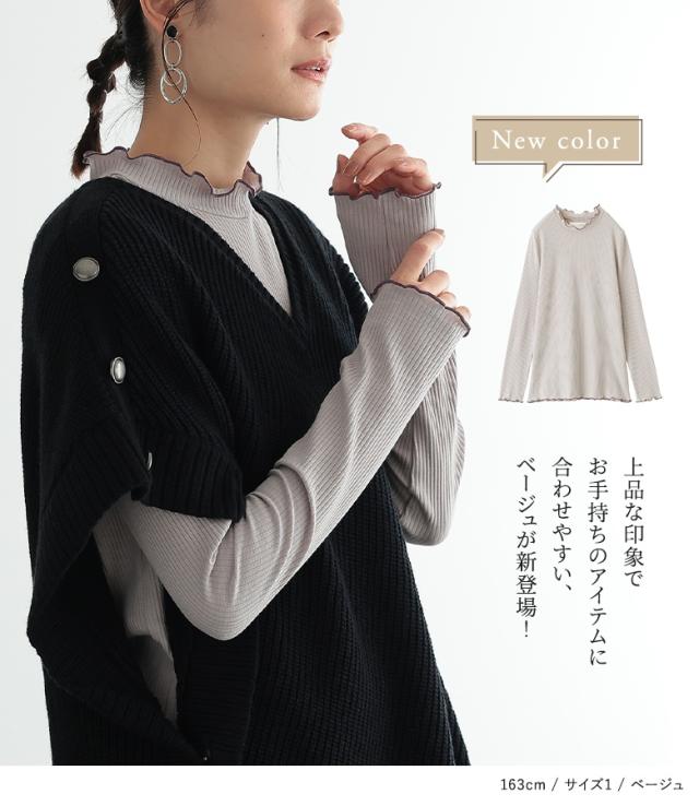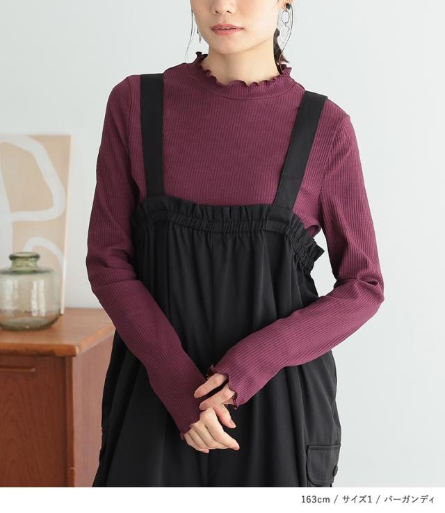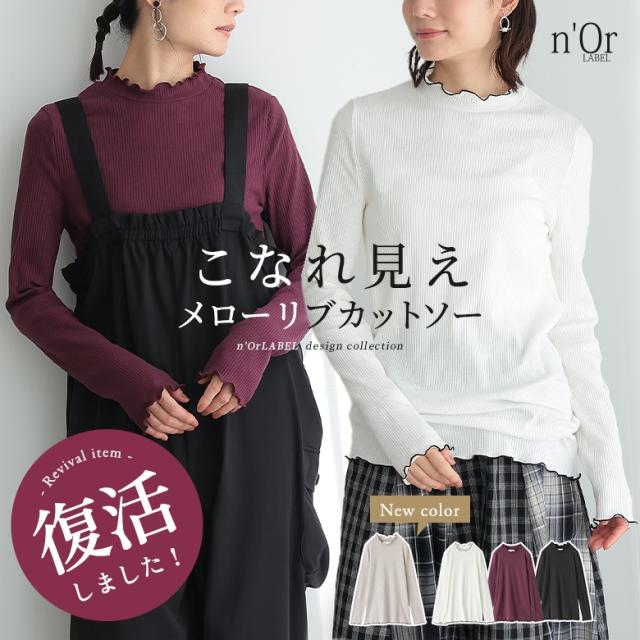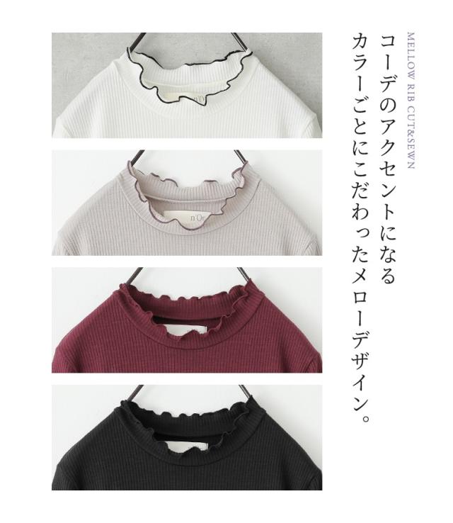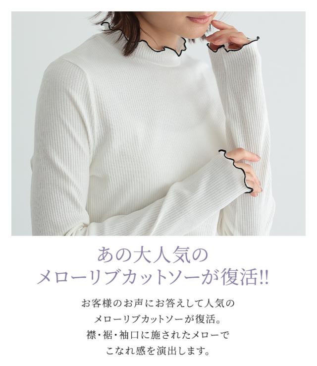 【新色登場】『メローデザインリブカットソー』 ※メール便可※【10】[カットソー レディース トップス ロンT リブカットソー メロー メロウ ハイネック 長袖 配色 無地 レイヤード 重ね着 着回し 薄手 綿混 伸縮性 8305007]