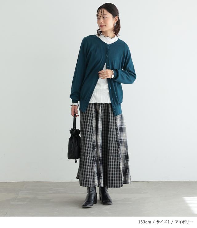 | 「小さいさん」 154cm/47kg B81 W65 H85 普段はS またはMサイズ着用。 | 【1(S〜M)】 ◆着丈:ヒップ下位 ◆袖丈:指先まですっぽり隠れる位 【2(L〜LL)】 ◆着丈:ヒップから10cm下位 ◆袖丈:指先から3cm長い位 2(L〜LL)は全体的にゆったりしていました。私の場合、1(S〜M)の方が大き過ぎず丁度良いゆったり感で、ゆるっとお洒落に着られました♪ |