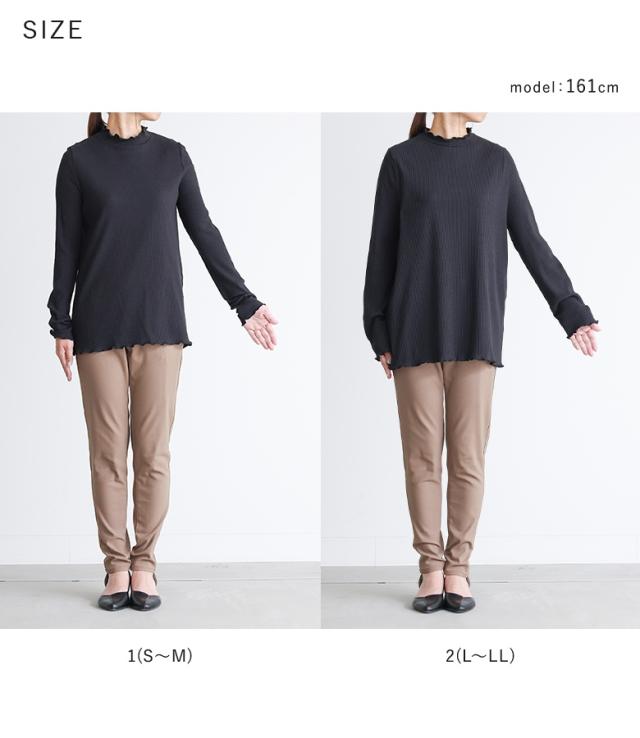 | 「標準さん」 157cm/51kg B83 W62 H85 普段はMサイズ着用。 | 【1(S〜M)】 ◆着丈:ヒップが隠れるか隠れないか位 ◆袖丈:親指が隠れる位 【2(L〜LL)】 ◆着丈:ヒップがすっぽり隠れる位 ◆袖丈:指先が少し見える位 1(S〜M)は少し沿いますが、ぴったりではなく程よくゆとりがあり可愛く着られました。2(L〜LL)は全体的にゆったりしているので、ゆるっと着たい人におすすめです。 |