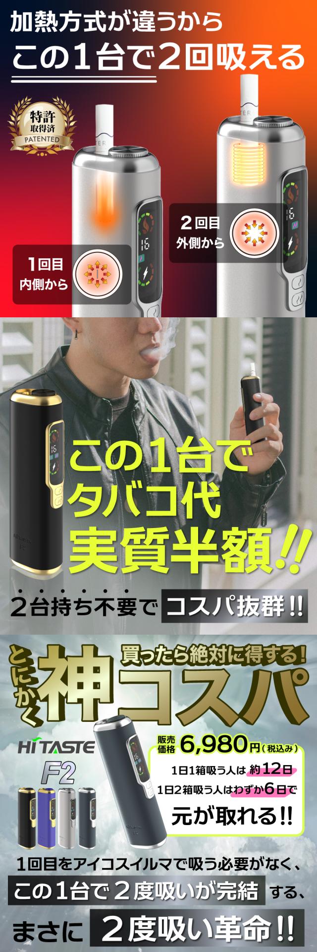 【イルマ不要! 1台で2回吸える】アイコス互換機 2度吸い 2回吸える アイコスイルマ互換機 シケモク マシーン 最新 連続30回 HITASTE F2 ハイテイスト コンパクト IQOSイルマ互換機 イルマ互換機 電子タバコ 本体 加熱式タバコ ランキング IQOSILUMA用 アイコスイルマワン用