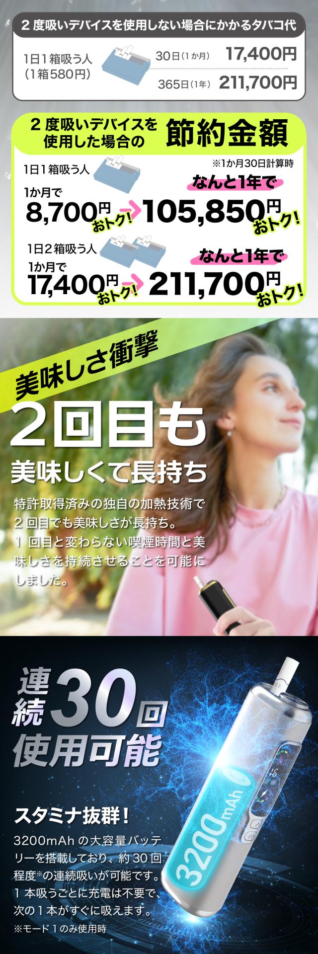 1回目と2回目の加熱方式を変えているので、タバコ葉を余すことなく最後まで美味しく喫煙できます。