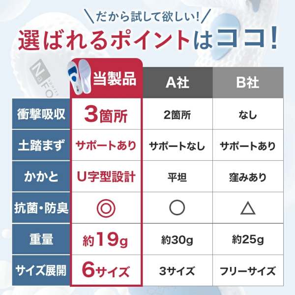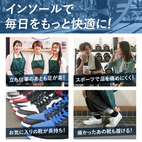 - 仕事用で使用してますが、足への負担が全然違います。中敷きの無い生活は出来ません!