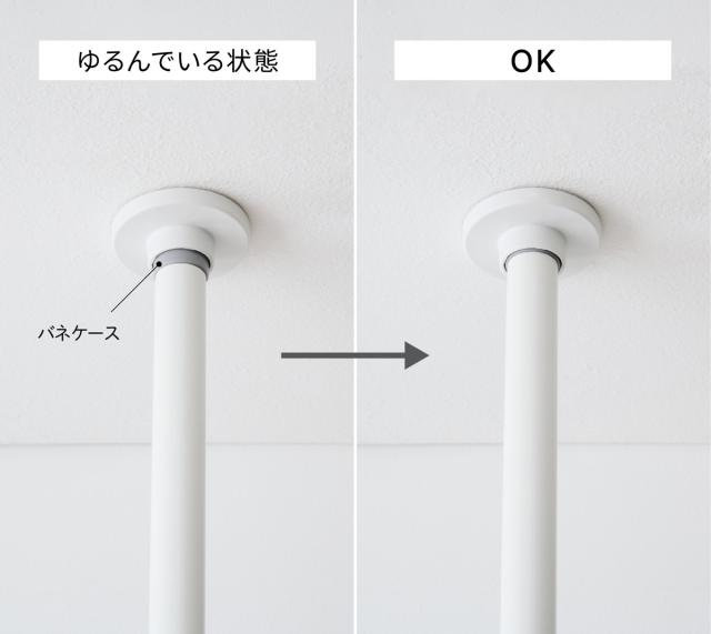 しっかり突っ張れているかどうかを目で見て確認できるので安心です。バネケースが見えていると突っ張り具合が足りない状態なので、更に圧着させて固定してください。