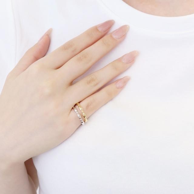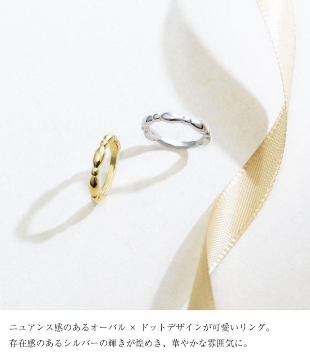 指もとのアクセントにピッタリなオーバル×ドットデザインのリングは、 存在感のあるシルバーの輝きが、 きらきらと煌めき華やかな雰囲気にお仕立ていたしました。