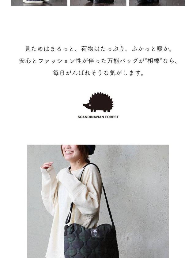 SCANDINAVIAN FOREST スカンジナビアンフォレスト バッグ ショルダーバッグ 肩掛け 斜め掛け カバン 鞄 ナイロン 中綿 キルティング 撥水加工 しっかり 丈夫 一泊二日 北欧 大きい 通勤 旅行 秋 冬 パティ