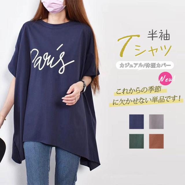 半袖tシャツ レディース Tシャツ 半袖 ゆったり tシャツ ロンT ロングtシャツ トップス プルオーバー ビックtシャツ カジュアル 大きいサイズ 通気性 快適 お洒落 体型カバー
