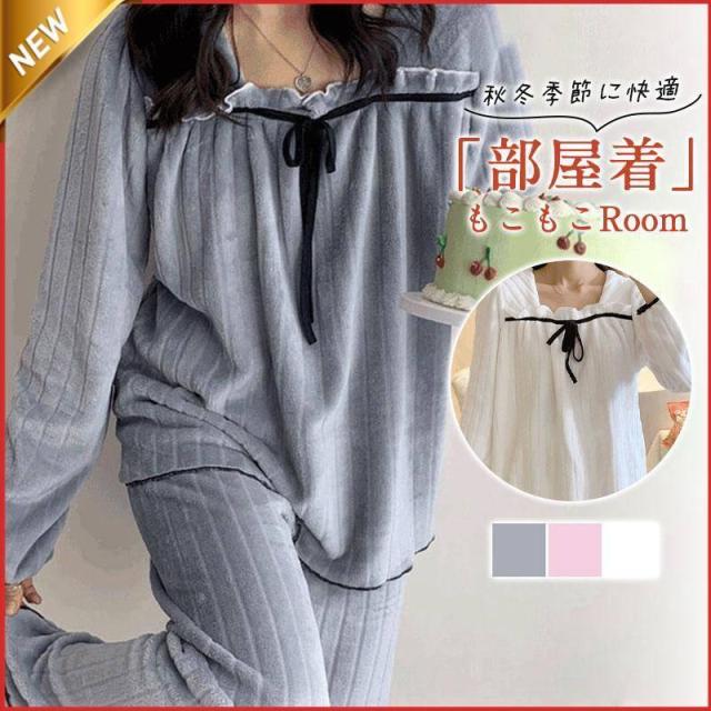 【大特価】パジャマ レディース ルームウェア 上下セット秋 冬 もこもこ 部屋着 長袖 リラックス 厚手 寝間着 あったか 可愛い 長ズボン ふわふわ