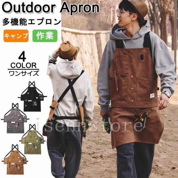 エプロン メンズ 作業用 キャンバス 前掛け ワークエプロン キッチン DIY ガーデニング 職人 無地 ポケット 撥水 ロング 膝丈 大人