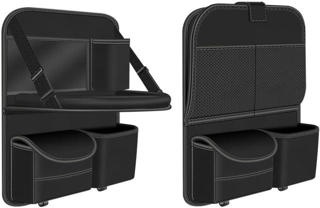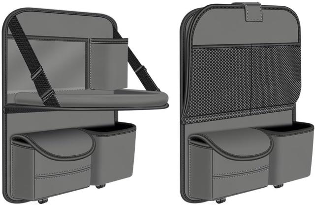 【車内スペースを節約】サイズ:36*40cm。車の椅子のバックダイニングテーブル収納袋には、収納袋3つ+ティッシュバッグ1つ、ネットポケット2つ+折りたたみ式ダイニングテーブルがあります。車のシートの後ろに掛けるテーブル収納バッグです。折りたたみダイニングテーブルは平らな皿、シンプルで軽い食べ物などを置くのに使用でき、収納袋はペーパータオル、魔法瓶カップ、傘、IDカード、携帯電話、メガネ、その他の小さなアイテムを収納できます。数量:1個【折りたたみ式ダイニングテーブル】車椅子バックダイニングテーブル収納袋のダイニングテーブルは広げたり閉じたりすることができ、ダイニングテーブルの前に透明なサンドイッチバッグがデザインされており、携帯電話やタブレットを置くのに使用できます。 ダイニングテーブルを広げると、後部座席の乗客も車内で食事をしながら映画を見ることができます。【高品質素材】シンプルで絶妙なナパグレインレザー素材を使用しており、柔らかく繊細な手触りで、異臭がなく、汚れにくいです。車に取り付けると、車がすっきりきれいになるだけでなく、車の全体的なスタイルも向上します。