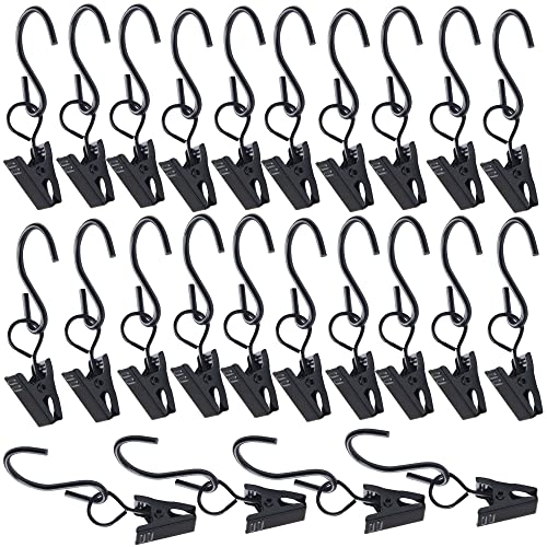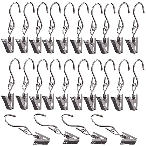 金属製カーテンフッククリップ 24 PC マルチ-機能-カーテンリング浴室寝室オフィス用クリップ付きタイプカーテンリング -6cm