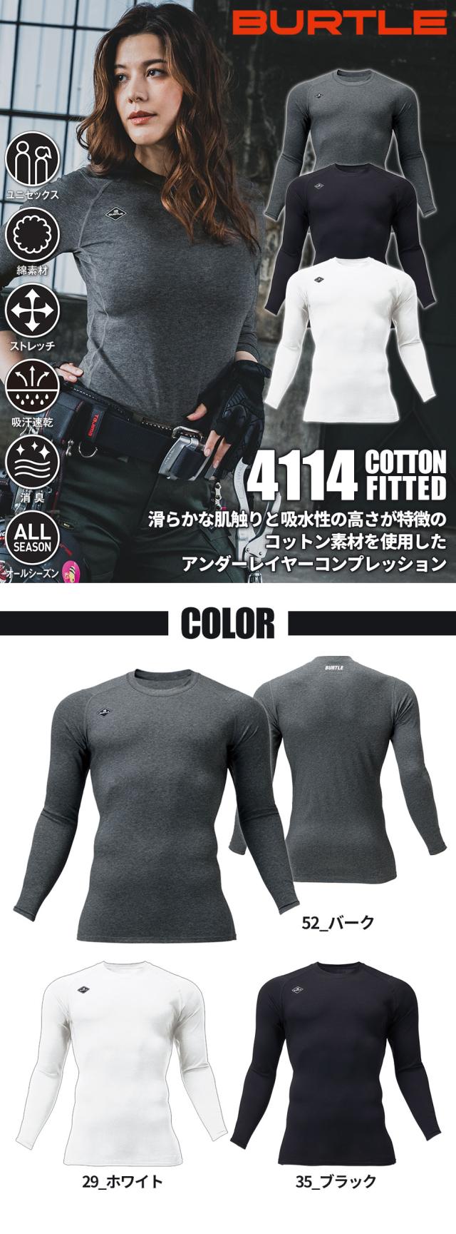 [即日発送]バートル コンプレッションインナー BURTLE インナー コットンフィッテッド 4114 メンズ バートル コンプレッション 長袖 作業着 ストレッチ 消臭 吸汗速乾 通年 軽量 UVカット 吸水速乾 人気 おしゃれ かっこいい アウトドア