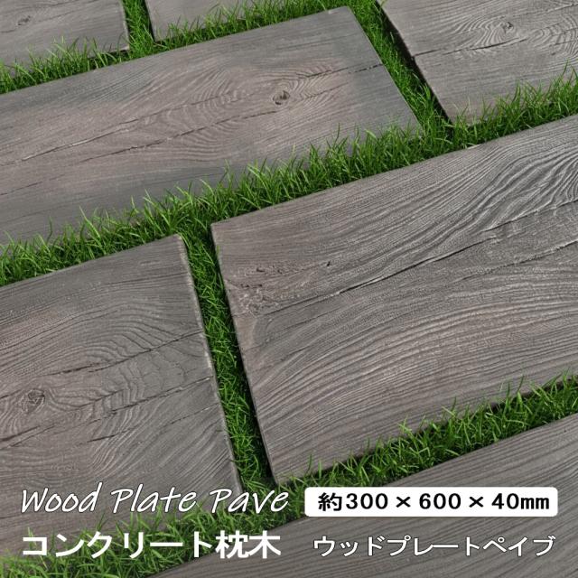 コンクリート 枕木 敷石 平板 ウッドプレートペイブ 約300×600mm角 2枚 枕木風 擬木 おしゃれ 木目 ステップストーン 庭 置くだけ 飛び石 踏み石 庭用 敷材 長方形 ガーデニング 外構 ステッピングストーン 40mm厚
