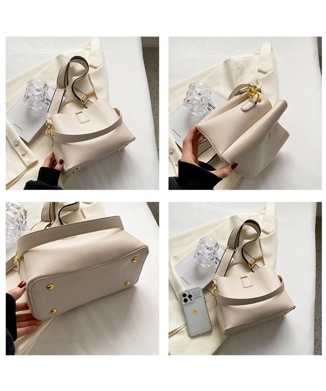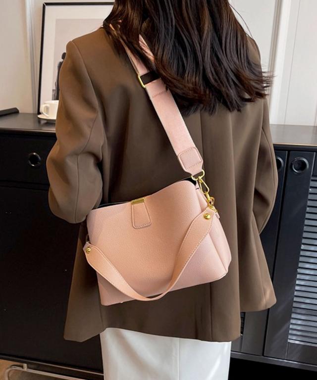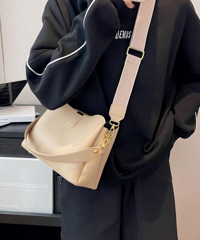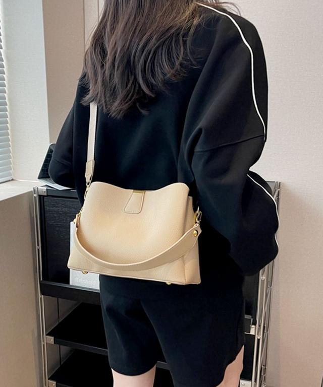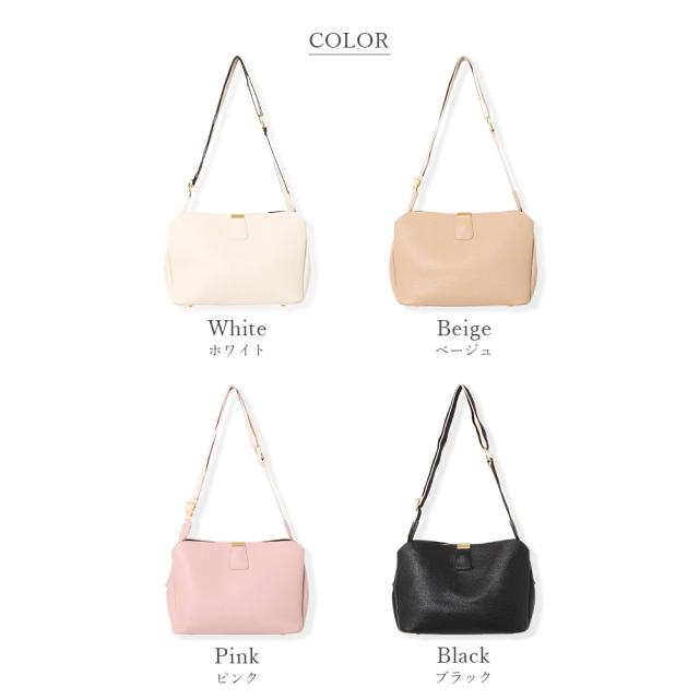 柔らかいシュリンクPUレザーを使用し、ゴールドパーツの輝きが上品な表情をプラスするおしゃれなショルダーバッグ。