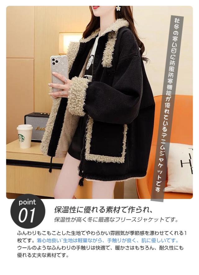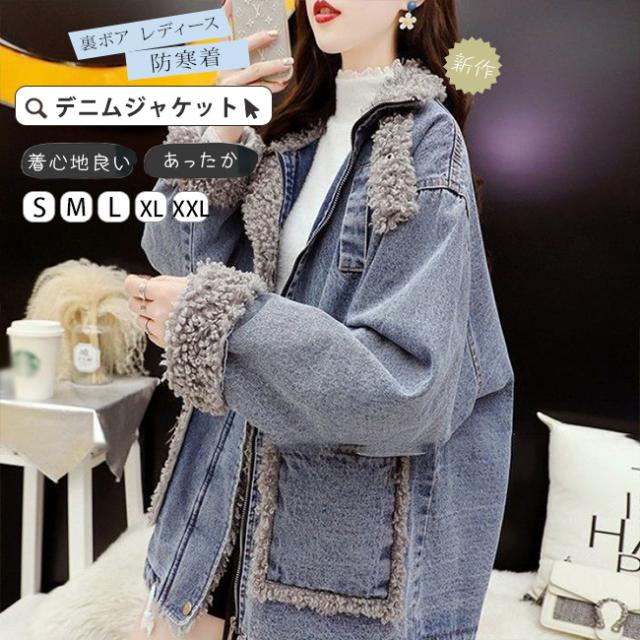 デニムジャケット レディース ボアジャケット 裏起毛 防寒 ブルゾン 暖かい コート Gジャン 厚手 ゆったり デニムコート ペアルック 韓国 アウター 裏ボア