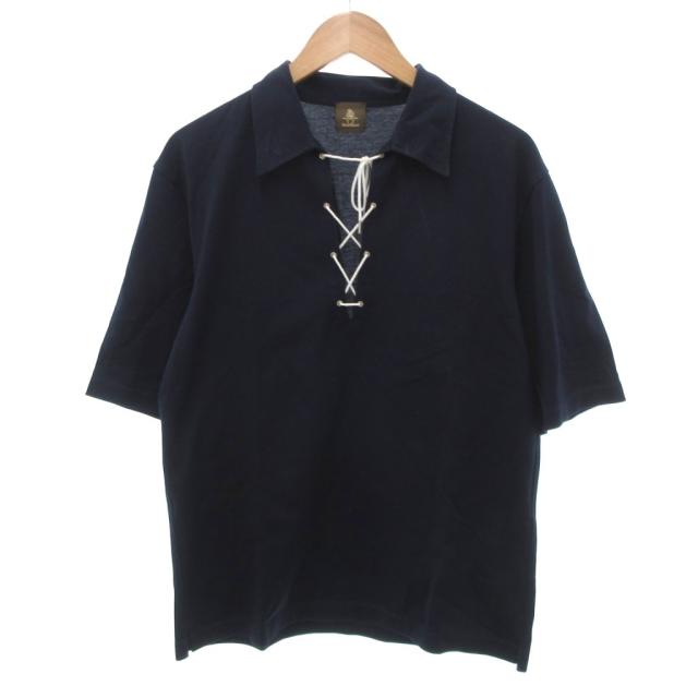 【中古】ポールスチュアート PAUL STUART ポロシャツ レースアップ 半袖 48 ネイビー /JS メンズ