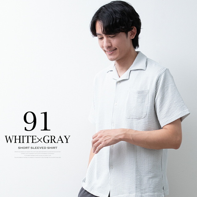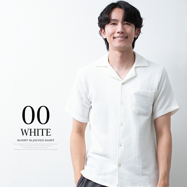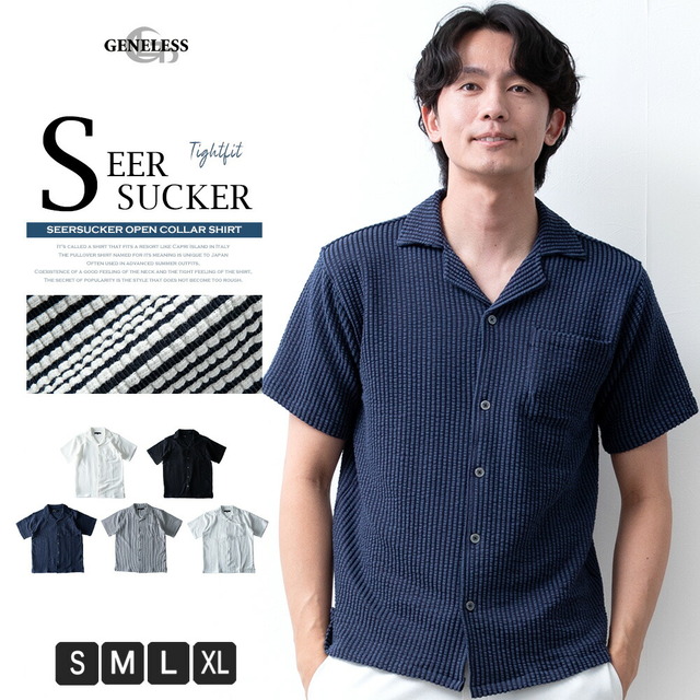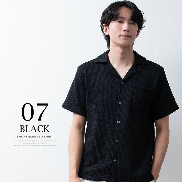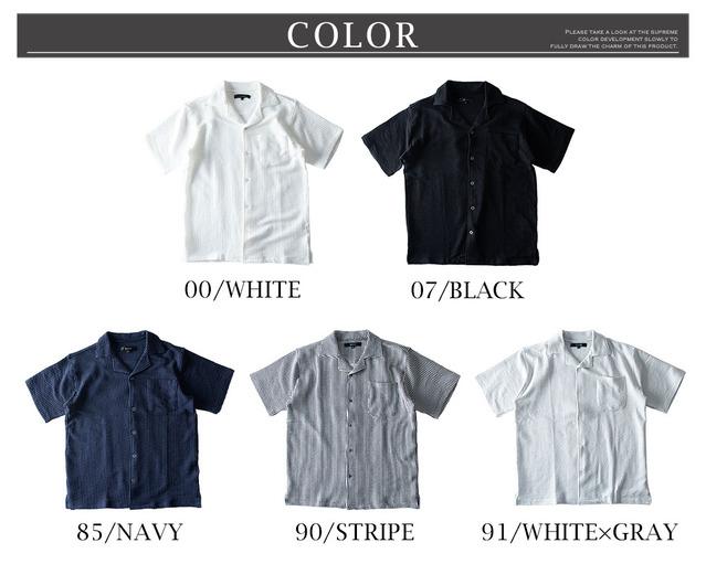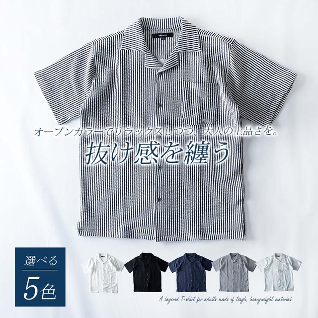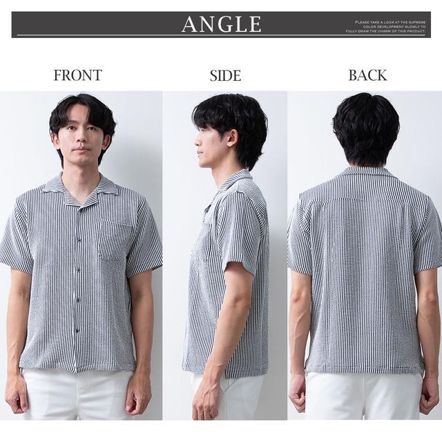 シャツ メンズ オープンカラー 開襟シャツ シアサッカー ストレッチ 半袖 ストライプ カジュアルシャツ 夏 半袖シャツ おしゃれ 涼しい ブラウス ワイシャツ メンズシャツ 全5色 Y752 オープンカラーシャツ オシャレ 無地 シンプル 白 紺 黒