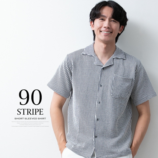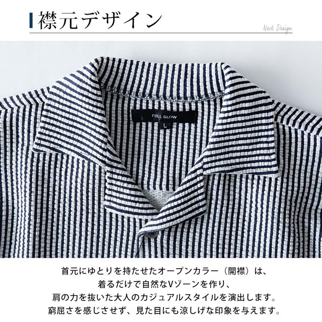 シャツ メンズ オープンカラー 開襟シャツ シアサッカー ストレッチ 半袖 ストライプ カジュアルシャツ 夏 半袖シャツ おしゃれ 涼しい ブラウス ワイシャツ メンズシャツ