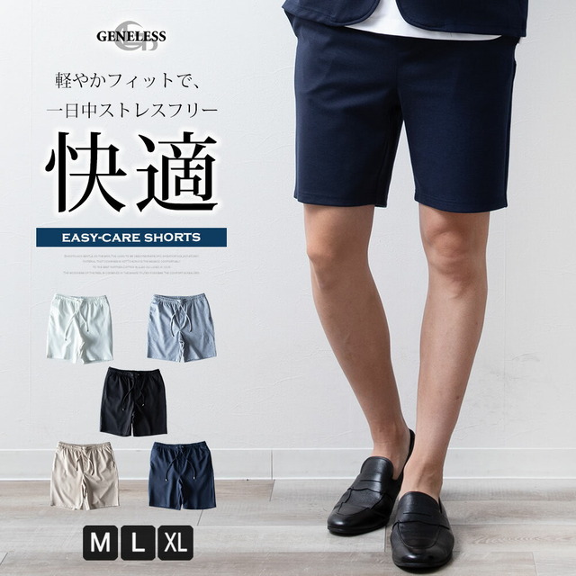 ショートパンツ メンズ ハーフパンツ イージーケア ウエストゴム 膝上 ショーパン ハーパン 短パン イージーパンツ ストレッチ セットアップ可能 スリム 涼しい ボトムス