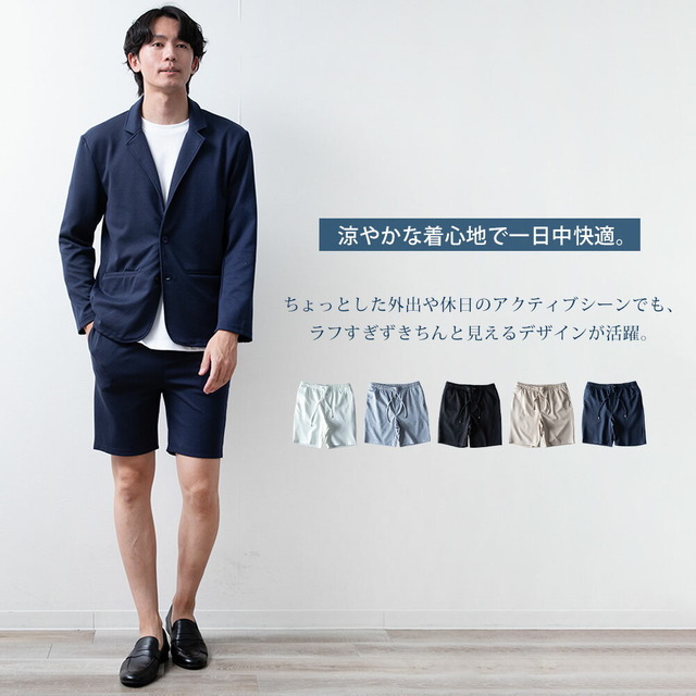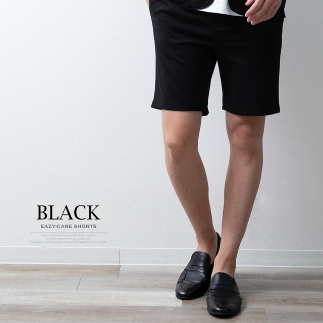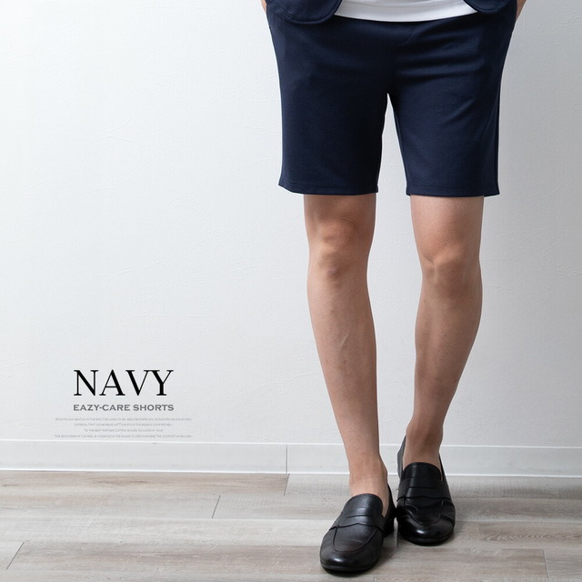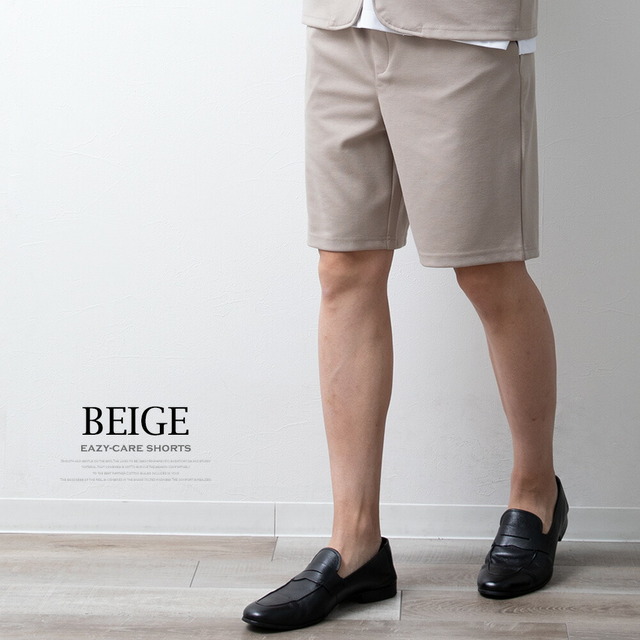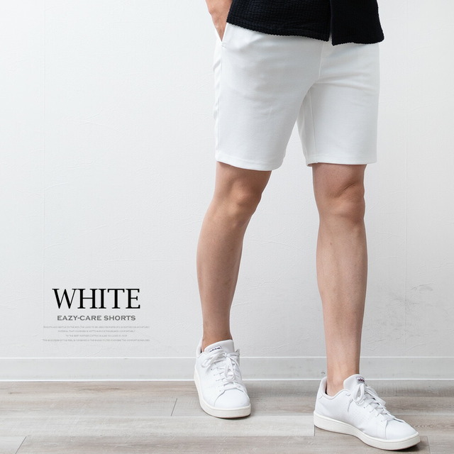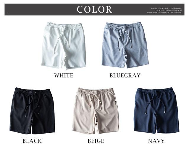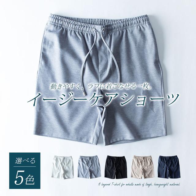 ショートパンツ メンズ ハーフパンツ イージーケア ウエストゴム 膝上 ショーパン ハーパン 短パン イージーパンツ ストレッチ セットアップ可能 スリム 涼しい ボトムス おしゃれ 膝丈 全5色 JP754002 シンプル 無地 白 黒 紺 ベージュ