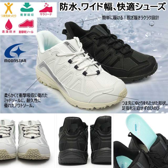 【25秋冬新作】 ムーンスター レディース 防水 ハンズフリー スニーカー SPLT SDL09 サプリスト 4E 幅広 シューズ