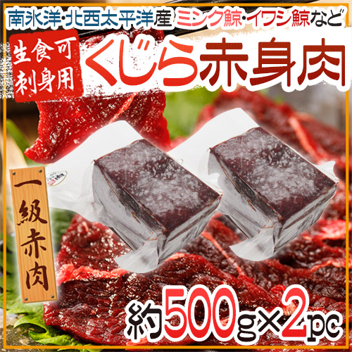 国産 ”鯨赤肉” 約1kg(約500g×2pc) 北西太平洋・南氷洋 ミンク鯨・イワシ鯨・ニタリ鯨など 送料無料