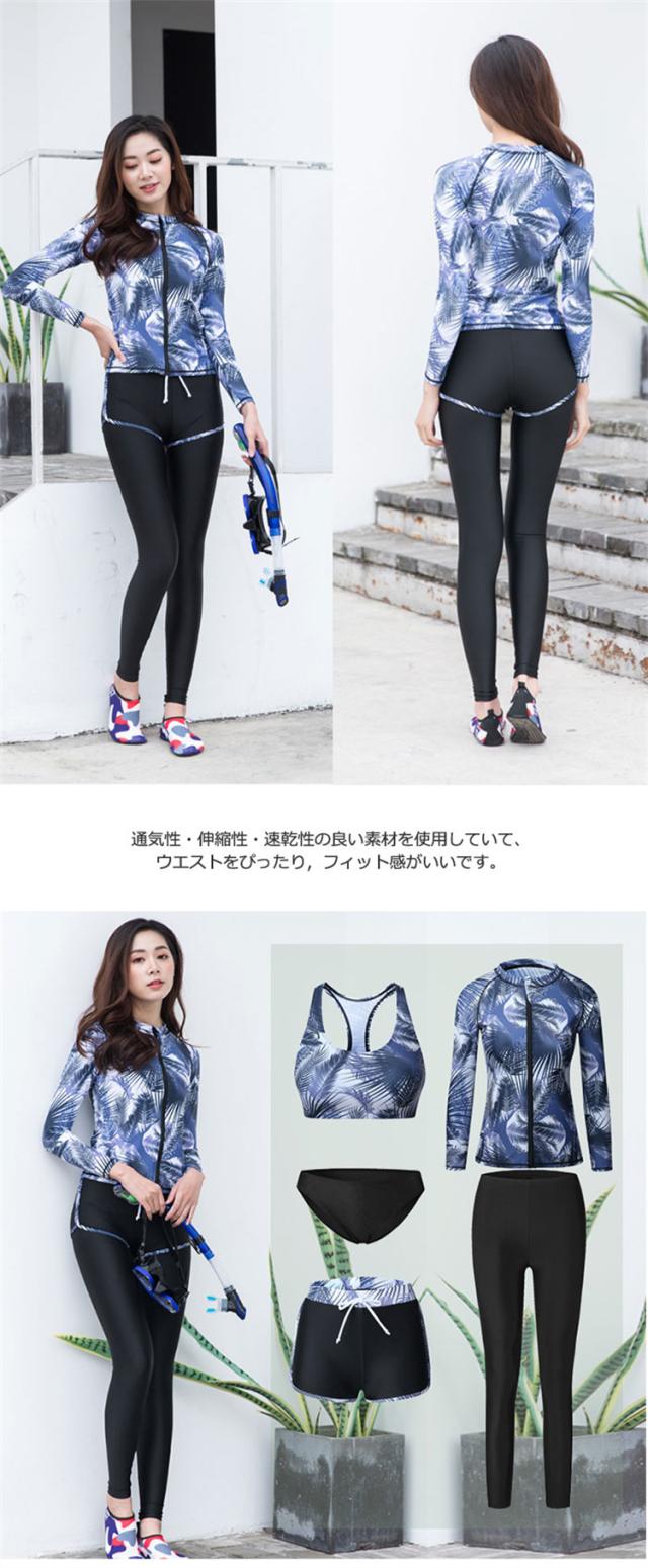 送料無料 水着 レディース 体型カバー セット セパレート フィットネス 水着 5点セット 大人水着 プール オールインワン 長袖 フィットネス スピード 女の子 ビキニ 練習用