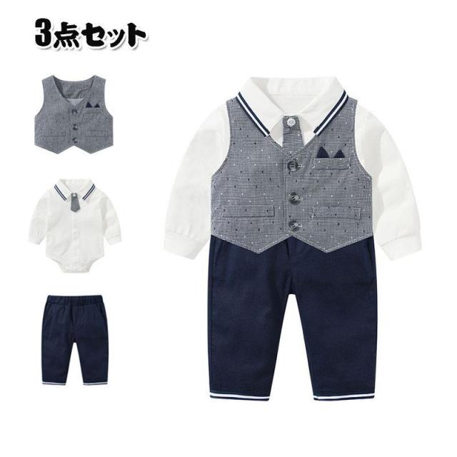男の子 ベビー フォーマル スーツ 子供服 ベビー服 紳士風 フォーマル 赤ちゃん 子供 男の子 キッズ ロンパースセット 59/66/73/80/90cm