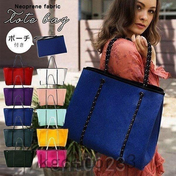 【期間限定】トートバッグネオプレンバッグポーチ付き大きめ大容量収納収納力抜群レディースバッグダイバー素材ネオプレーントートバッグシンプル合わせ