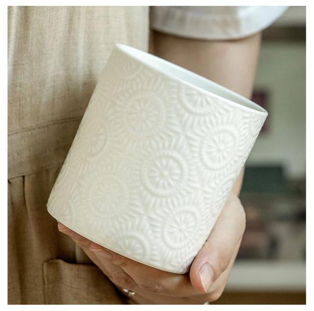 | マーガレットのモチーフをデコレーションカットした、どこか懐かしくもフレッシュな印象の陶器キッチンツールスタンド。 このツールスタンドは陶器製なので適度な重量をもっています。そのためスタンド自体に安定感があり、さまざまなサイズのツールを収納することができます。 普段よく使う箸やスプーンやフォークなどのカトラリー類をお入れしてお使いください。 | |