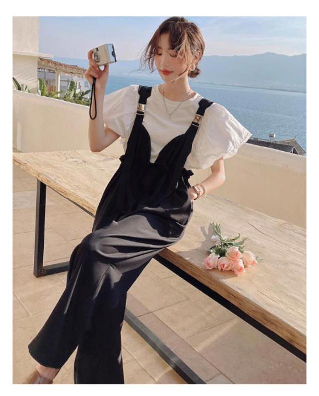 | 深めのVネックがパンツスタイルを女性らしく仕上げてくれる大人に似合うサロペット。 ウエストはゴム仕様になっているので、オールインワンでもウエスト位置がしっかり決まる! ハリのあるさらりとした生地は、綺麗な落ち感と、裏地なしでも透けない程よい厚みが魅力。 肩紐にはアジャスターがありサイズ調整が可能です。 足首まで隠れるワイドガウチョで、スタイルアップが期待できます。 インナー次第で、ロングシーズン着回せるのが嬉しい♪ ブラウスやタートルなどとも相性抜群!キレイめブラウスとコーデして、通勤やおしゃれ着にも。 | |