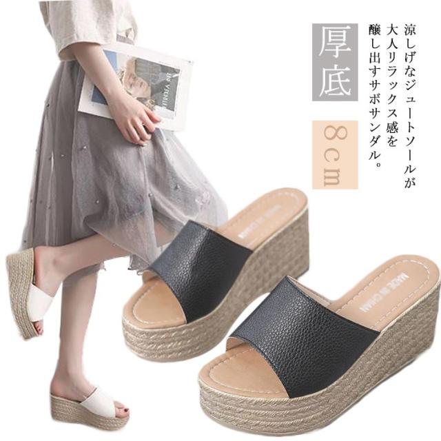 サンダル レディース 厚底 ミュール レディース 歩きやすい ウェッジソール ヒール 8cm 美脚 ミュールサンダル トレンド 旅行 黒 白 軽量 軽い カバードサンダル ウエッジ 人気 ブラック ホワイト ブラック