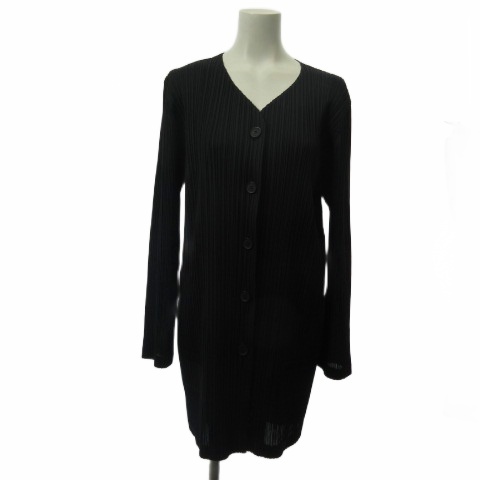 【中古】プリーツプリーズ PLEATS PLEASE PP31-JD443 プリーツ カーディガン ロング 長袖 黒 ブラック 3 レディース
