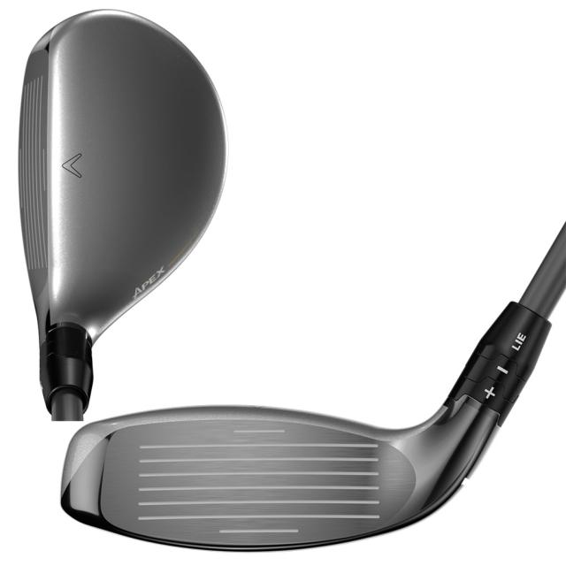 2019年から始まったSUPER HYBRIDという名前のついたこれまでのモデルは、どちらかといえば、大きなヘッドによる安心感ややさしさをイメージさせるものでしたが、新登場の「APEX Ti SUPER HYBRID」は少し性格が異なります。チタン製フェースの反発力を活かして、より飛距離性能を注力したタイプとなっており、ELYTEシリーズで言えば、ELYTE TITANIUMフェアウェイウッドのような存在です。導入されている専用のAi APEX FACEは、ミスヒットに対する強さや着弾範囲の狭さもさることながら、前へ前へと突き進んでいく弾道を実現することに、より重きを置いて設計。長めの設定となっているクラブ長さも、飛びのパフォーマンスに大きく貢献しています。APEX UW同様にステップ・ソールデザインが採用されているため、ラフなどでも抜群の抜けの良さを発揮。ロフトは2Hから5Hまでの4種類で、全番手に最新のニューオプティフィット4と呼ばれるアジャスタブルホーゼルを搭載しています。※専用トルクレンチは別売になります。