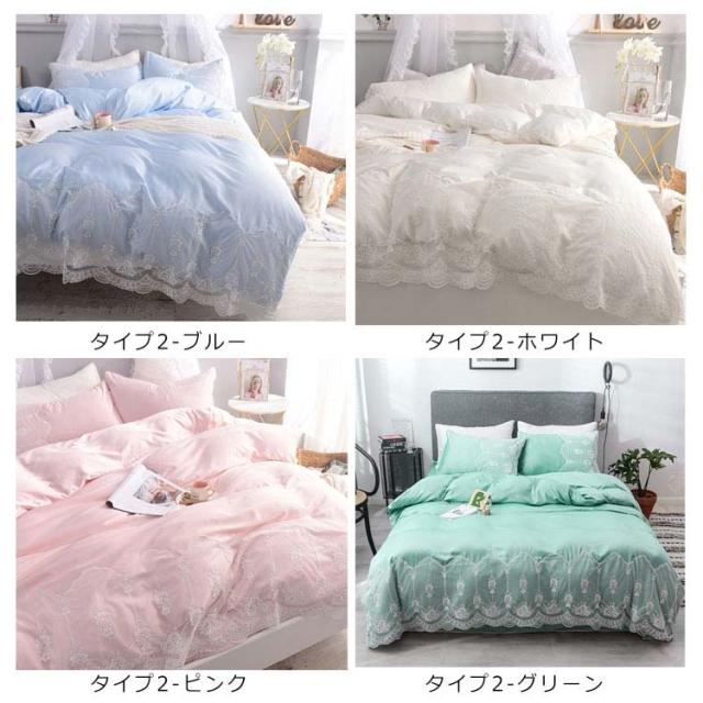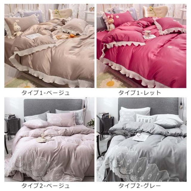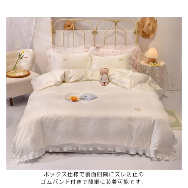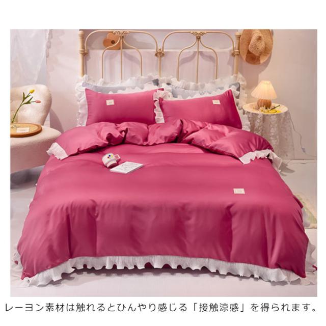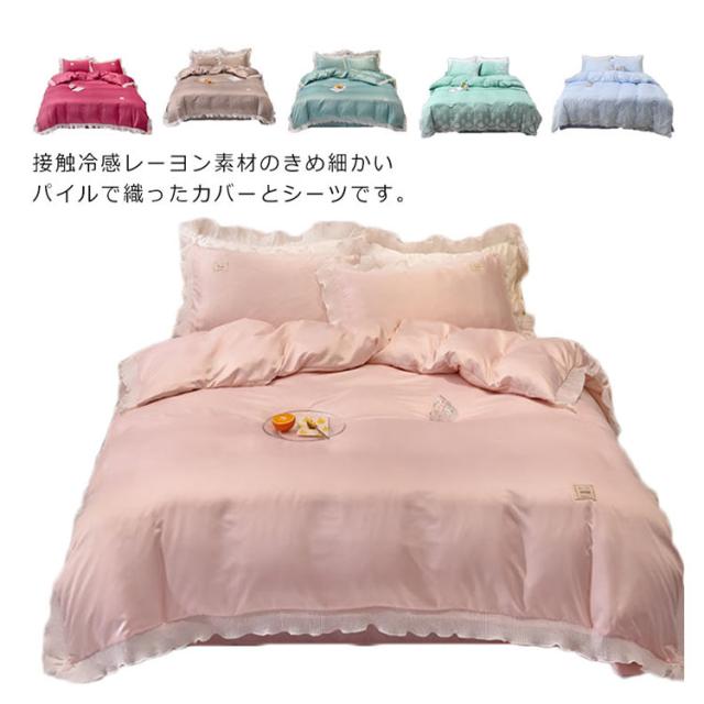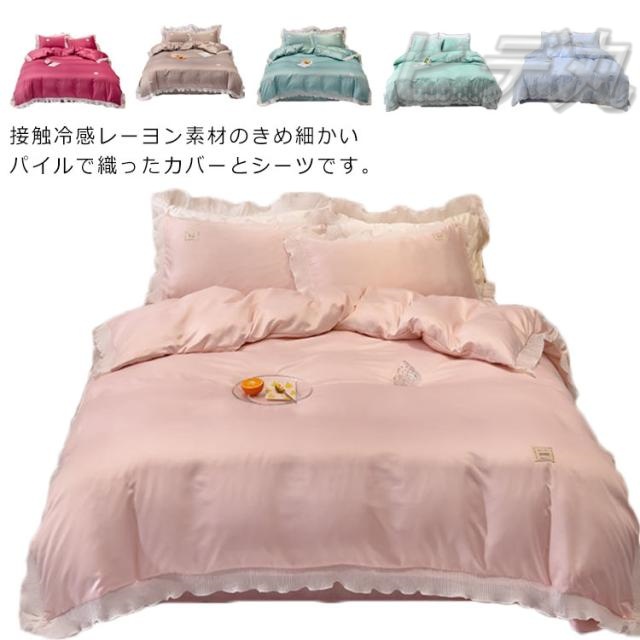 布団カバー ダブル セット ベッドカバー シーツカバー 4点セット 夏 接触冷感 フリル付き 掛け布団カバー 枕カバー フリル付き 丸洗いOK