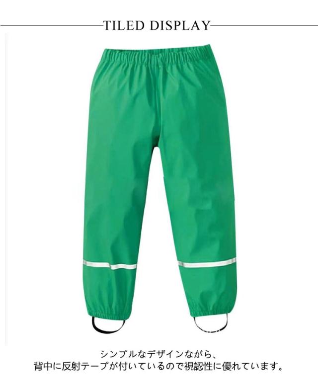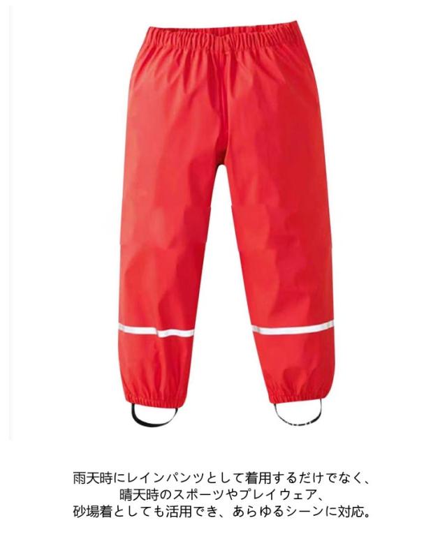 | 80-120cm!急な天候変化も安心!シンプルなデザインのこども用レインパンツ。 雨を防ぎ、劣化も少ないこども用レインパンツです。 シンプルなデザインながら、背中に反射テープが付いているので視認性に優れています。 雨天時にレインパンツとして着用するだけでなく、晴天時のスポーツやプレイウェア、砂場着としても活用でき、あらゆるシーンに対応。 | |