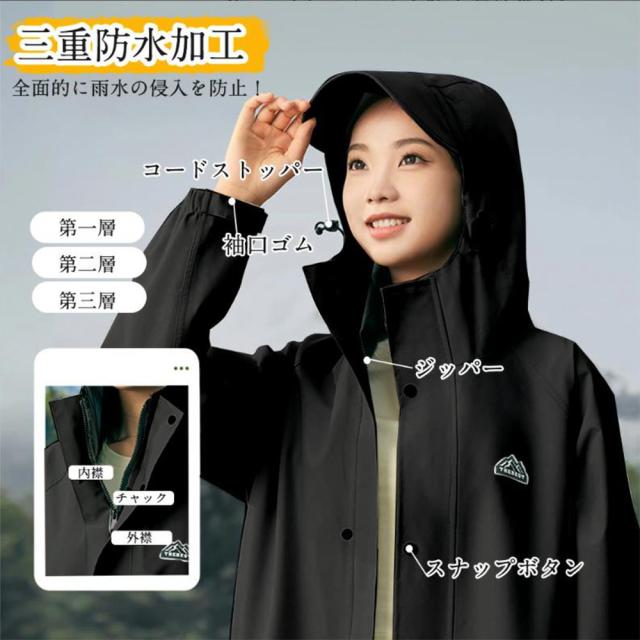 通勤・通学・アウトドアに大活躍ロング丈で足元がすっぽり隠れて濡れにくい 。傘よりも両手が使えるため、自転車やバイク通勤者に便利