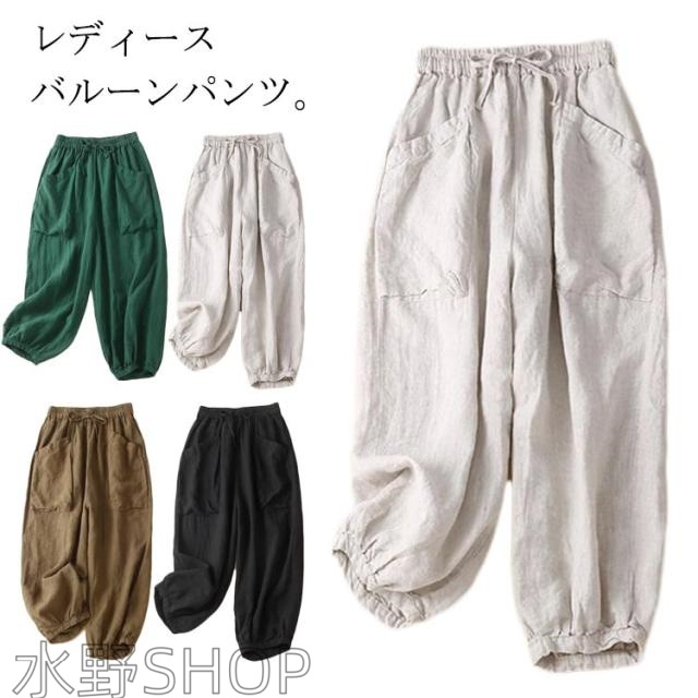 バルーンパンツ 薄手 9分丈 夏 綿麻パンツ ゆったり きれいめ サルエルパンツ 夏 レディース レディース パンツ 九分丈 コクーンパンツ きれいめ 春夏 リネン パンツ ウェストゴム 大きいサイズ 体型カバー 部屋着