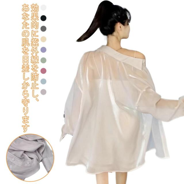 レディース日焼け止め シアーシャツ シャツ 前開きシャツ 上着 白 日焼け止め 長袖上着 送料無料 重ね着 大きいサイズ トレンド 透け感 カジュアルファッション 夏 春 秋 ゆったり涼しい