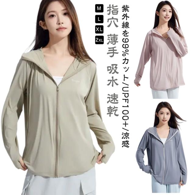 冷感 レディース UV パーカー 長袖 トップス パーカー 新作 ブラック ホワイト ダークグレー ライトグレー ベージュ ピンク M L XL 2XL