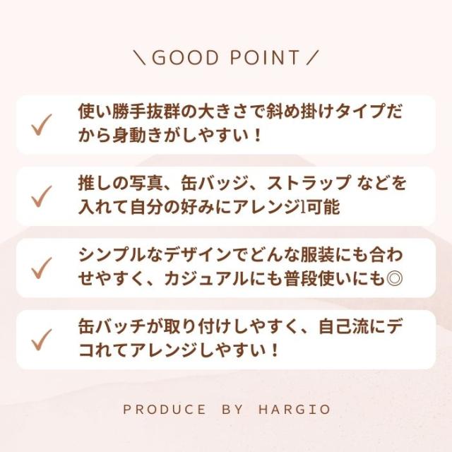 ◎ ショルダータイプで小さめサイズの痛バッグ です! 推し の写真、缶バッジ、ストラップ などを入れて自分の好みにアレンジしてください♪