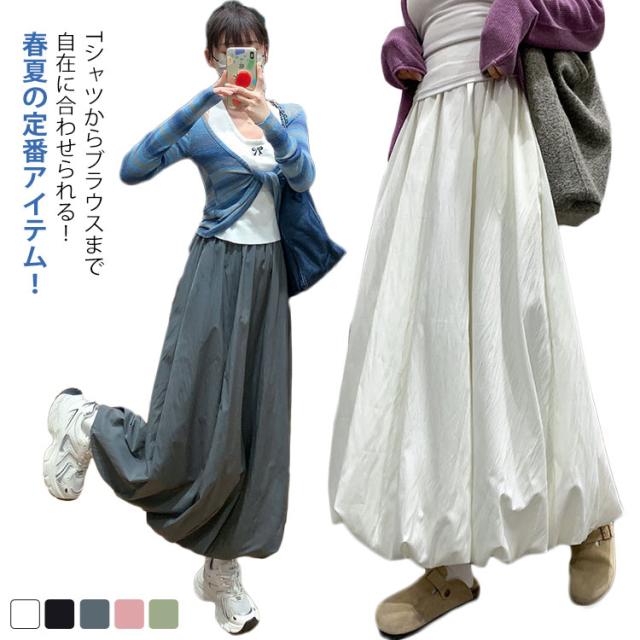バルーンスカート Aライン レディース レディースファッション 特集 ホワイト ブラック グレー ライトピンク ライトグリーン S M L XL