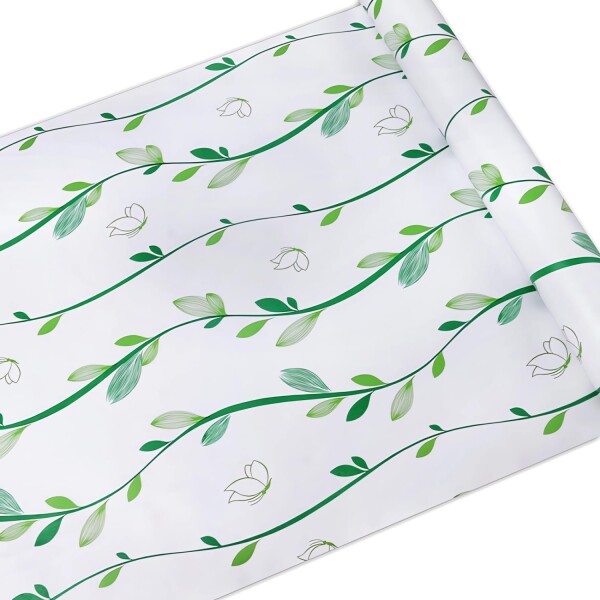 展開サイズ:約45cmx10m; 厚さ:約0.2mm; 素材:PVC; 柄:葉柄