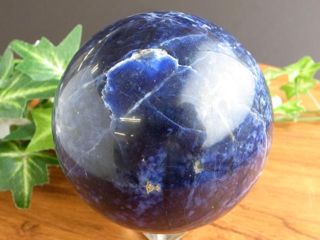 宇宙を包み込んだ深遠なブルー ソーダライト 丸玉 台座付 直径74mm 重さ495g 極上濃色ディープブルー 夢や目標のサポートをする石 方曹達石 一点物 ブラジル産