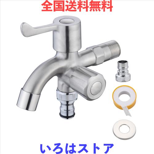 Jeonestan 水道 蛇口 二股 洗濯機・ガーデニング・散水ホース同時接続対応 ステンレス製 防錆 耐久型 分岐水栓 G1/2汎用接続口 壁付