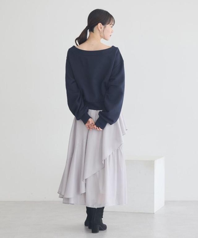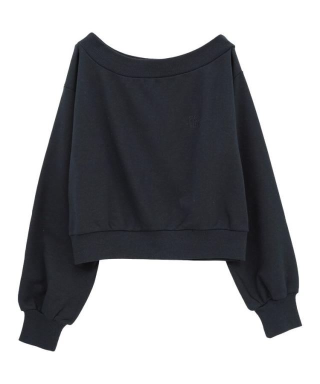 アースミュージック&エコロジー(earth music&ecology)/ショート丈ワンポイント刺繍オフショルスウェット