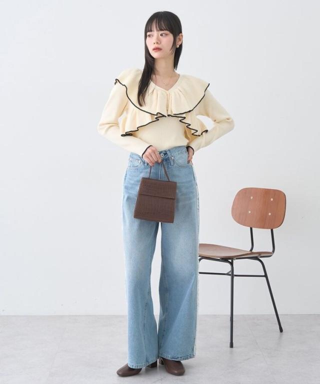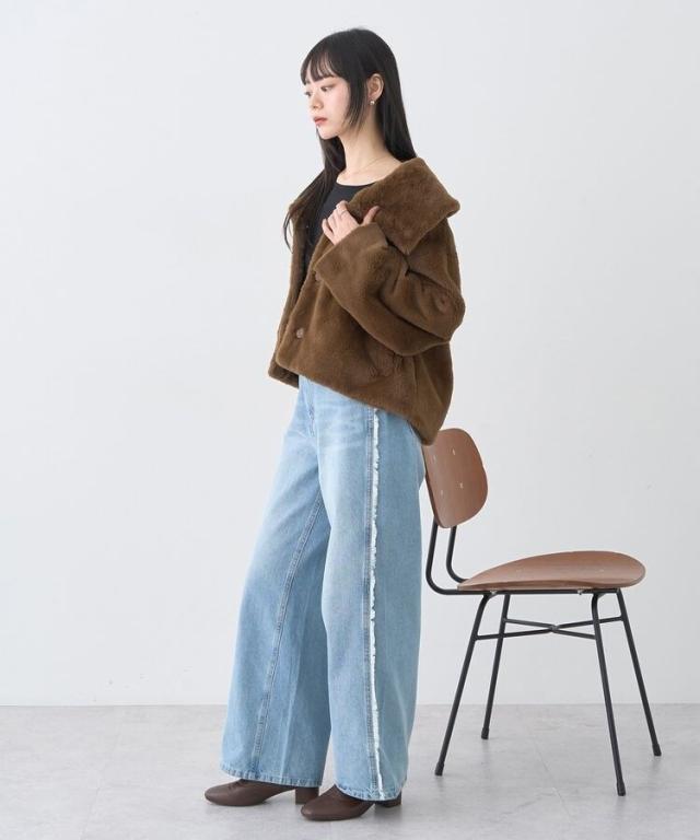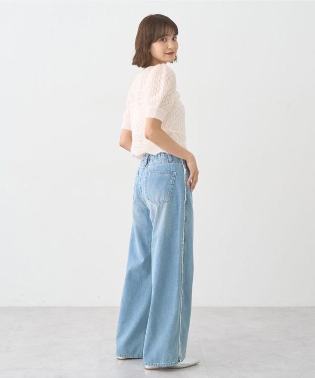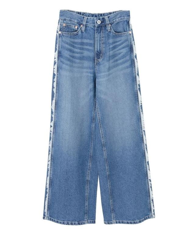 カジュアルなコーディネートに欠かせない着回しやすいデニムパンツ。トレンド感あるワイドレッグで脚長シルエットを演出してくれる綺麗なフォルムが魅力です。サイドラインに加えたカットフリンジのラインアクセントがポイント。程よいハイカットでメリハリバランスのとれたワンツースタイルを楽しめる今季おすすめのアイテムです。透け感[なし]