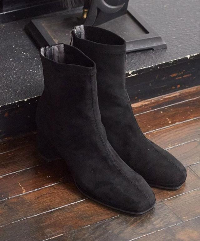 起毛感のあるスウェード調素材がシーズンムード高まるショートブーツ。長めな丈ながらも、ストレッチ素材を使用することでフィット感のある履き心地を叶えます。程よい高さのチャンキーヒールは、歩きやすさはもちろん女性らしいコーディネートとの相性も抜群。シンプルなデザインで幅広いスタイリングにマッチしてくれるおすすめのアイテムです。※モデル着用画像は、光の当たり具合で色味が違って見える場合がございます。※お使いのモニター環境によって商品の色味が違って見える場合がございます。