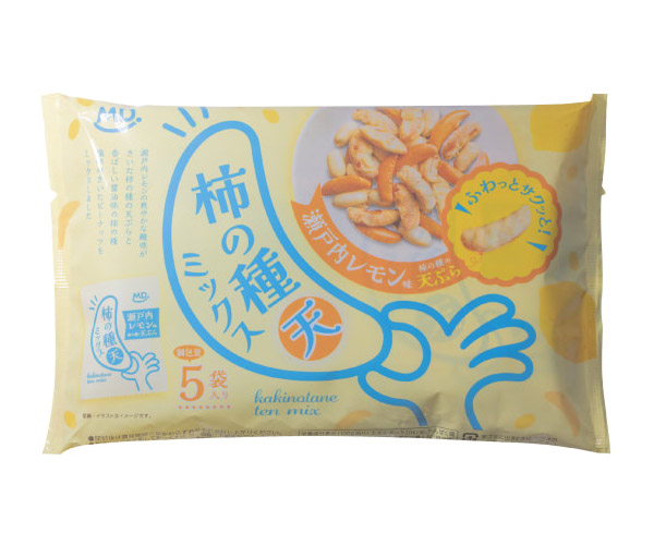 瀬戸内レモン味に仕上げた柿の種の天ぷらと、柿の種、ピーナッツを合わせて3種ミックス商品です。