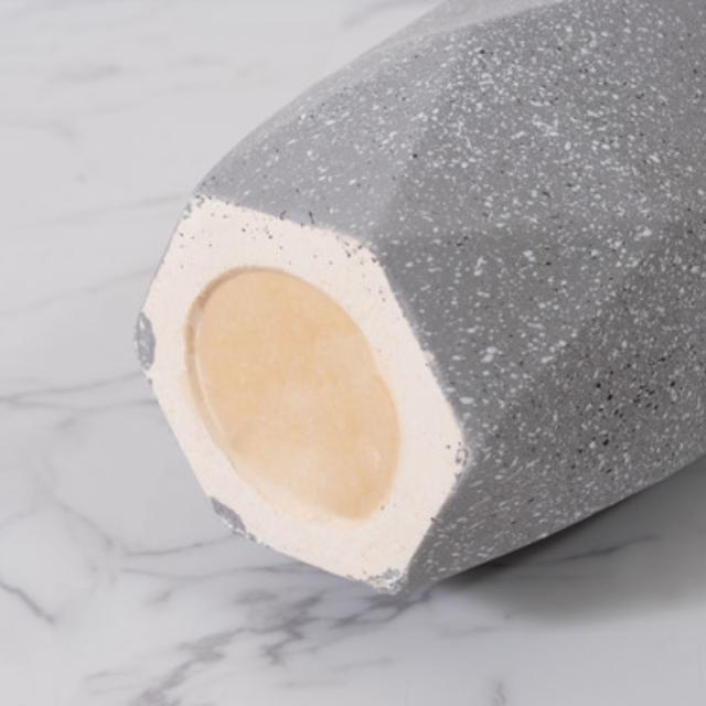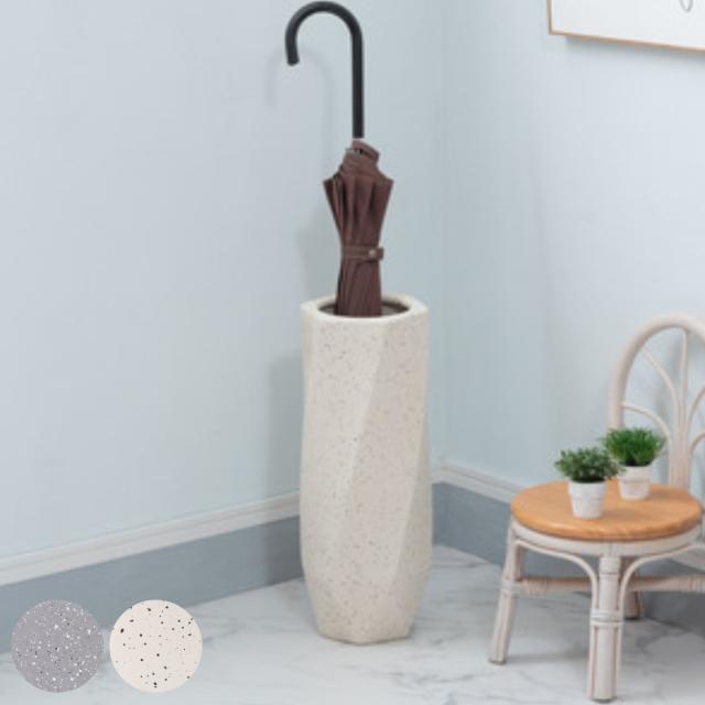 玄関の限られたスペースにも置きやすい、スリムな傘立て。マットな質感の石目調とねじるような形状が美しく、テイストを問わず合わせやすいデザイン性の高さがポイントです。
