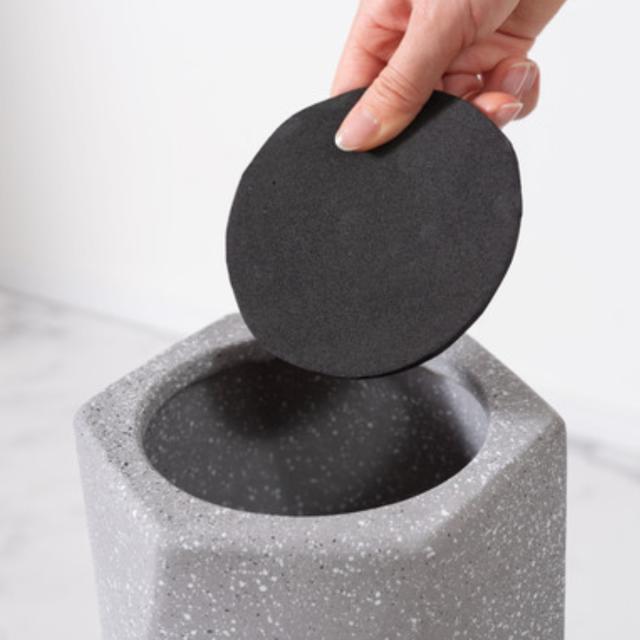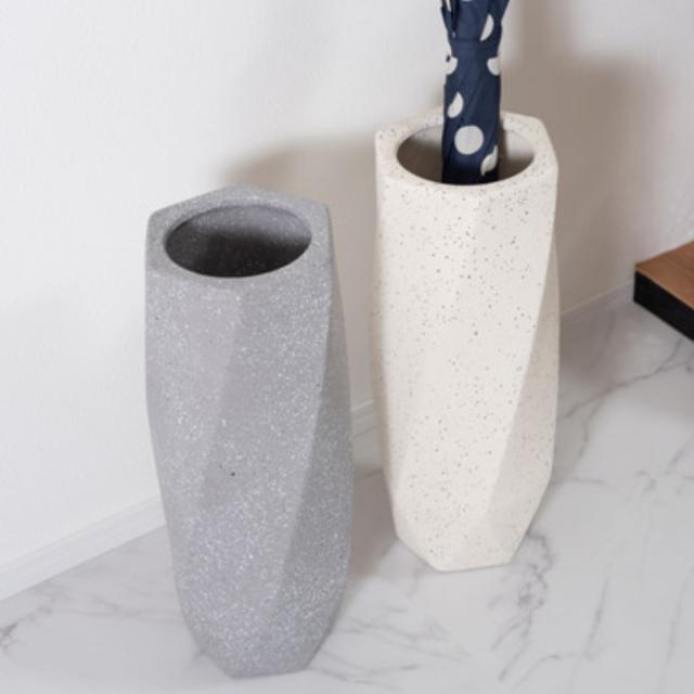 石のようなデザインが施されたモダンテイストな陶器製です。陶器は水に強く、濡れたままの傘を入れてもサビの心配がありません。また、重みがあるため安定感もあります。
